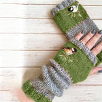 Warme geborduurde handschoenen met patchwork