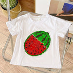 2022 nieuw watermeloen t-shirt met wisselende pailletten