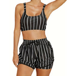 Zwart en wit gestreept conservatief tweedelig zwempak