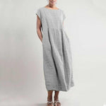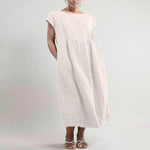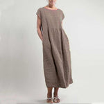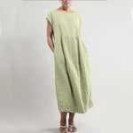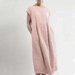 Effen kleur mouwloze losse linnen jurk met zak