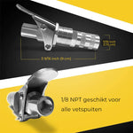 {"id":7215400157356,"title":"Vetspuitkoppeling","handle":"grease-gun-coupler","description":"\u003cp\u003e\u003cmeta charset=\"utf-8\"\u003e\u003cspan data-mce-fragment=\"1\" class=\"a-list-item\"\u003e\u003cspan style=\"vertical-align: inherit;\"\u003e\u003cspan style=\"vertical-align: inherit;\"\u003eDruk gewoon op het niveau om de vetkoppeling te vergrendelen en los te maken, dit bespaart veel tijd in vergelijking met de traditionele koppeling. \u003c\/span\u003e\u003c\/span\u003e\u003c\/span\u003e\u003cspan data-mce-fragment=\"1\" class=\"a-list-item\"\u003e\u003cspan style=\"vertical-align: inherit;\"\u003e\u003cspan style=\"vertical-align: inherit;\"\u003eDe snelkoppeling is duidelijk groter en langer dan een traditionele koppeling, de super krappe plek kan moeilijk te manoeuvreren zijn, maar ingetrokken smeernippels zijn gemakkelijker als 11\/16\" (\u003c\/span\u003e\u003c\/span\u003e\u003c\/span\u003e\u003cspan style=\"vertical-align: inherit;\"\u003e\u003cspan style=\"vertical-align: inherit;\"\u003e 1,75 cm)  \u003c\/span\u003e\u003c\/span\u003e\u003cspan data-mce-fragment=\"1\" class=\"a-list-item\"\u003e\u003cspan style=\"vertical-align: inherit;\"\u003e\u003cspan style=\"vertical-align: inherit;\"\u003eOD erin past.\u003c\/span\u003e\u003c\/span\u003e\u003c\/span\u003e\u003cbr data-mce-fragment=\"1\"\u003e\u003c\/p\u003e\n\u003cp\u003e\u003cspan data-mce-fragment=\"1\" class=\"a-list-item\"\u003e\u003cbr\u003e\u003c\/span\u003e\u003c\/p\u003e\n\u003ch3 data-mce-fragment=\"1\"\u003e\u003cspan data-mce-fragment=\"1\"\u003e\u003cstrong data-mce-fragment=\"1\"\u003e\u003cspan style=\"vertical-align: inherit;\"\u003e\u003cspan style=\"vertical-align: inherit;\"\u003eKENMERKEN:\u003c\/span\u003e\u003c\/span\u003e\u003c\/strong\u003e\u003c\/span\u003e\u003c\/h3\u003e\n\u003cul data-mce-fragment=\"1\" id=\"mylist\" class=\"a-unordered-list a-vertical a-spacing-mini\"\u003e\n\u003cli data-mce-fragment=\"1\" class=\"mylistitemclass\"\u003e\n\u003cspan data-mce-fragment=\"1\" class=\"a-list-item\"\u003e\u003cspan data-mce-fragment=\"1\" class=\"a-list-item\"\u003e\u003cspan style=\"vertical-align: inherit;\"\u003e\u003cspan style=\"vertical-align: inherit;\"\u003e【Lock and Seal tot 82737 kPA\u003c\/span\u003e\u003c\/span\u003e\u003c\/span\u003e\u003c\/span\u003e\u003cspan data-mce-fragment=\"1\" class=\"a-list-item\"\u003e\u003cspan style=\"vertical-align: inherit;\"\u003e\u003cspan style=\"vertical-align: inherit;\"\u003e】Versterkte kaken en hoogwaardige afdichtingspakking zorgen voor langdurige en stabiele prestaties, voorkomen lekkage, zelfs bij extreme druk van 12.000 PSI.\u003c\/span\u003e\u003c\/span\u003e\u003c\/span\u003e\n\u003c\/li\u003e\n\u003cli data-mce-fragment=\"1\" class=\"mylistitemclass\"\u003e\u003cspan data-mce-fragment=\"1\" class=\"a-list-item\"\u003e\u003cspan style=\"vertical-align: inherit;\"\u003e\u003cspan style=\"vertical-align: inherit;\"\u003e【Robuuste bouwkwaliteit】 Gebouwd met hoogwaardig verzinkt gelegeerd staal voor de hele dag prestaties in de winkel of garage, zwaarder en sterker dan alle andere vetkoppelingen op de markt.\u003c\/span\u003e\u003c\/span\u003e\u003c\/span\u003e\u003c\/li\u003e\n\u003cli data-mce-fragment=\"1\" class=\"mylistitemclass\"\u003e\u003cspan data-mce-fragment=\"1\" class=\"a-list-item\"\u003e\u003cspan style=\"vertical-align: inherit;\"\u003e\u003cspan style=\"vertical-align: inherit;\"\u003e【Eenhandige bediening】Het soepele intrekmechanisme maakt bediening met één hand mogelijk. \u003c\/span\u003e\u003cspan style=\"vertical-align: inherit;\"\u003eZodra de vetkoppeling op de smeernippel is vergrendeld, blijft deze aan en heeft u beide handen vrij om de vetspuit te bedienen.\u003c\/span\u003e\u003c\/span\u003e\u003c\/span\u003e\u003c\/li\u003e\n\u003cli data-mce-fragment=\"1\" class=\"mylistitemclass\"\u003e\u003cspan data-mce-fragment=\"1\" class=\"a-list-item\"\u003e\u003cspan style=\"vertical-align: inherit;\"\u003e\u003cspan style=\"vertical-align: inherit;\"\u003e【Uniek ontwerphulp bij het lokaliseren van Zerk-fittingen in het donker】Het unieke en gepatenteerde terugtrekmechanisme trekt de binnenste afdichting terug en laat de buitenste mofring wijd open, wat helpt bij het lokaliseren van de zerk-fittingen in de dode hoek.\u003c\/span\u003e\u003c\/span\u003e\u003c\/span\u003e\u003c\/li\u003e\n\u003cli data-mce-fragment=\"1\" class=\"mylistitemclass\"\u003e\u003cspan data-mce-fragment=\"1\" class=\"a-list-item\"\u003e\u003cspan style=\"vertical-align: inherit;\"\u003e\u003cspan style=\"vertical-align: inherit;\"\u003e【Compatibel met alle vetspuiten en smeernippels】1\/8 NPT past op alle standaard vetspuiten, mini-vetspuiten. \u003c\/span\u003e\u003cspan style=\"vertical-align: inherit;\"\u003eHet past ook op alle DIN- en SAE-smeernippels, vervang eenvoudig uw bestaande vetspuitkoppelingen.\u003c\/span\u003e\u003c\/span\u003e\u003c\/span\u003e\u003c\/li\u003e\n\u003c\/ul\u003e\n\u003cp\u003e \u003c\/p\u003e\n\u003ch3 data-mce-fragment=\"1\"\u003e\u003cspan data-mce-fragment=\"1\"\u003e\u003cstrong data-mce-fragment=\"1\"\u003e\u003cspan style=\"vertical-align: inherit;\"\u003e\u003cspan style=\"vertical-align: inherit;\"\u003eSPECIFICATIES:\u003c\/span\u003e\u003c\/span\u003e\u003c\/strong\u003e\u003c\/span\u003e\u003c\/h3\u003e\n\u003cul data-mce-fragment=\"1\" id=\"mylist\" class=\"a-unordered-list a-vertical a-spacing-mini\"\u003e\n\u003cli data-mce-fragment=\"1\"\u003e\n\u003cstrong\u003e\u003cspan style=\"vertical-align: inherit;\"\u003e\u003cspan style=\"vertical-align: inherit;\"\u003eAfmeting: \u003c\/span\u003e\u003c\/span\u003e\u003c\/strong\u003e \u003cspan data-mce-fragment=\"1\"\u003e\u003cspan style=\"vertical-align: inherit;\"\u003e\u003cspan style=\"vertical-align: inherit;\"\u003e‎8 x 4 x 2 cm\u003c\/span\u003e\u003c\/span\u003e\u003c\/span\u003e\n\u003c\/li\u003e\n\u003cli data-mce-fragment=\"1\"\u003e\n\u003cstrong\u003e\u003cspan style=\"vertical-align: inherit;\"\u003e\u003cspa