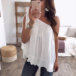 Een schouder gegolfde tops T-shirt losse casual bloes
