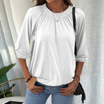 T-shirt met ronde hals en driekwart mouwen