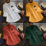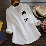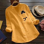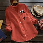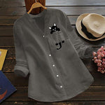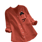 Blouse met V-hals van katoen en kattenprint met lange mouwen