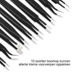 {"id":6790375899308,"title":"Precisie roestvrijstalen pincet (10 stuks)","handle":"precision-stainless-steel-tweezers-10-pcs","description":"\u003cp\u003e\u003cem\u003e\u003cspan style=\"color: #8b8989;\" data-mce-style=\"color: #8b8989;\"\u003e\u003cstrong\u003eEen 10-pack roestvrijstalen pincet is een antistatische en niet-magnetische pincet die is ontworpen voor meervoudig precisiewerk voor zowel vrouwen als mannen. Uitstekende gereedschapstas, gemakkelijk uit te nemen en op te bergen zonder gedoe.\u003c\/strong\u003e\u003c\/span\u003e\u003c\/em\u003e\u003c\/p\u003e\n\u003cp\u003e\u003cspan style=\"color: #808080;\"\u003e\u003cem\u003e\u003cstrong\u003e\u003cimg alt=\"\" src=\"https:\/\/cdn.shopifycdn.net\/s\/files\/1\/0569\/2846\/9164\/files\/1_3ea568ac-77ad-4ad5-b2a5-2e53e9b9860d_480x480.gif?v=1624861367\" style=\"display: block; margin-left: auto; margin-right: auto;\"\u003e\u003c\/strong\u003e\u003c\/em\u003e\u003c\/span\u003e\u003c\/p\u003e\n\u003ch3\u003e\u003cspan style=\"color: #ff8000;\" data-mce-style=\"color: #ff8000;\"\u003e\u003cstrong\u003eKENMERKEN\u003c\/strong\u003e\u003c\/span\u003e\u003c\/h3\u003e\n\u003cul\u003e\n\u003cli\u003e\u003cstrong\u003eMEERDERE SOORTEN PIJPERS\u003c\/strong\u003e\u003c\/li\u003e\n\u003c\/ul\u003e\n\u003cp style=\"padding-left: 30px;\"\u003eDeze 10-in-1 precisie-pincetset bevat verschillende soorten pincetten met verschillende punten, extra fijne puntige pincetten, hoekige pincetten, pincetten met platte punt, om aan uw verschillende perspectieven te voldoen.\u003c\/p\u003e\n\u003cul\u003e\n\u003cli\u003e\u003cstrong\u003eDRAAGBAAR MET GEREEDSCHAPTAS\u003c\/strong\u003e\u003c\/li\u003e\n\u003c\/ul\u003e\n\u003cp style=\"padding-left: 30px;\"\u003eAlle pincetuiteinden waren bedekt met beschermende doppen, zodat gebruikers beschermd waren tegen verwondingen. Alles verpakt in een canvas gereedschapstas, compact en overzichtelijk, gemakkelijk uit te nemen en terug te brengen, draagbaar en gemakkelijk op te bergen voor alle standby-toepassingen.\u003c\/p\u003e\n\u003cul\u003e\n\u003cli\u003e\u003cstrong\u003eANTISTATISCH \u0026amp; NIET-MAGNETISCH\u003c\/strong\u003e\u003c\/li\u003e\n\u003c\/ul\u003e\n\u003cp style=\"padding-left: 30px;\"\u003eDit pincet voor veilig plating heeft een elektrostatische dissipatieve coating die elektronische componenten helpt beschermen tegen statische schade. Niet-magnetische tips helpen objecten te beschermen tegen vastplakken en verbeteren de werkefficiëntie.\u003c\/p\u003e\n\u003cul\u003e\n\u003cli\u003e\u003cstrong\u003eWIJD GEBRUIKTE PIJPENSET\u003c\/strong\u003e\u003c\/li\u003e\n\u003c\/ul\u003e\n\u003cp style=\"padding-left: 30px;\"\u003eComplete pincetset voor dames en heren die kan worden gebruikt voor het epileren van wenkbrauwen, wimperverlenging, ingegroeide haarverwijdering of keuken, handwerk, sieraden, laboratoriumwerk, elektronicareparatie en andere precisieklussen.\u003c\/p\u003e\n\u003cul\u003e\n\u003cli\u003e\u003cstrong\u003eDUURZAME CONSTRUCTIE\u003c\/strong\u003e\u003c\/li\u003e\n\u003c\/ul\u003e\n\u003cp style=\"padding-left: 30px;\"\u003eGemaakt van hoogwaardig roestvrij staal met uitstekende details. De randen van het voorste deel waren vrij goed gepolijst, zeer comfortabel om in de hand te houden en gemakkelijk te bedienen zonder pijn.\u003c\/p\u003e\n\u003cp\u003e\u003cstrong\u003e\u003cimg alt=\"\" src=\"https:\/\/cdn.shopifycdn.net\/s\/files\/1\/0569\/2846\/9164\/files\/3_8e88aada-ee57-404b-8b4d-457601f5a0d8_480x480.jpg?v=1624861393\" style=\"display: block; margin-left: auto; margin-right: auto;\"\u003e\u003c\/strong\u003e\u003c\/p\u003e\n\u003ch3\u003e\u003cspan style=\"color: #ff8000;\"\u003e\u003cstrong\u003eSPECIFICATIES:\u003c\/strong\u003e\u003c\/span\u003e\u003c\/h3\u003e\n\u003cul\u003e\n\u003cli\u003eMateriaal: roestvrij staal\u003c\/li\u003e\n\u003cli\u003eMaat: 125 mm; 12.5 cm\u003c\/li\u003e\n\u003cli\u003eAANTAL: 10 stuks\u003c\/li\u003e\n\u003cli\u003ePakket: 1 set precisie-pincet van roestvrij staal\u003c\/li\u003e\n\u003c\/ul\u003e\n\u003cp\u003e\u003cem\u003e\u003cstrong\u003eOPMERKINGEN\u003c\/strong\u003e\u003c\/em\u003e\u003cbr\u003e\u003cbr\u003e\u003cem\u003eHoud rekening met kleine meetafwijkingen als gevolg van handmatige meting.\u003c\/em\u003e\u003cbr\u003e\u003cbr\u003e\u003cem\u003eVanwege de verschillende monitor en het lichteffect kan de werkelijke kleur van het item enigszins afwijken van de kleur die op de foto's wordt getoond.\u003c\/em\u003e\u003c\/p\u003e","published_at":"2021-06-28T03:24:37-03:00","created_at":"2021-06-28T02:34:31-03:00","vendor":"Yochoos","type":"","tags":["discount","Handgereedschap","Huishoudartikelen","Huishoudelijk gereedschap"],"price":2199,"price_min":2199,"price_max":2199,"available":true,"price_varies":false,"compare_at_price":3665,"compare_at_price_min":3665,"compare_at_price_max":3665,"compare_at_price_varies":false,"variants":[{"id":40009371418796,"title":"Default Title","option1":"Default Title","option2":null,"option3":null,"sku":"GJ13391-X5746","requires_shipping":true,"taxable":false,"featured_image":null,"available":true,"name":"Precisie roestvrijstalen pincet (10 stuks)","public_title":null,"options":["Default Title"],"price":2199,"weight":0,"compare_at_price":3665,"inventory_management":null,"barcode":"","requires_selling_plan":false,"selling_plan_allocations":[],"quantity_rule":{"min":1,"max":null,"increment":1}}],"images":["\/\/www.finebay.nl\/cdn\/shop\/products\/1_9a9a9df0-dceb-4d7c-897f-0db68630e72f.jpg?v=1624861409","\/\/www.finebay.nl\/cdn\/shop\/products\/1_8789cda9-f427-4c08-b394-e22dc9ea18e6.jpg?v=1624861432","\/\/www.finebay.nl\/cdn\/shop\/products\/2_d45342f7-de72-4be8-8176-e6fdcec10993.jpg?v=1624861432","\/\/www.finebay.nl\/cdn\/shop\/products\/2_61072761-4d6d-48c4-9b30-47df6a9fb051.jpg?v=1624861432","\/\/www.finebay.nl\/cdn\/shop\/products\/5_84efd73f-b479-4022-ab9b-6afacbc206b2.jpg?v=1624861432","\/\/www.finebay.nl\/cdn\/shop\/products\/6_375b4cb7-a415-47e6-978f-b3cade782b4e.jpg?v=1624861432","\/\