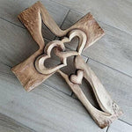 Gesneden houten kruis met elkaar verweven harten