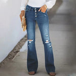 Gescheurde jeans met vijf rijen knopen